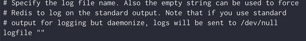 vi /opt/homebrew/etc/redis.conf파일에서 "/logfile"를 검색한다. logfile ""값이 기본 값이다. ""로 되어있으면, 레디스는 표준 출력(stdout)으로 로그를 기록한다.