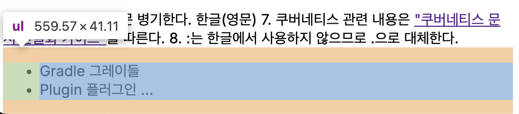 // @/app/pages/glossary/page.tsx 파일 import ReactMarkdown from 'react-markdown'; import MainSidebar from '@/app/Sidebar'; const markdownText = ` ... 6. 제목은 한글 영문 병기한다. 한글(영문) 7. 쿠버네티스 관련 내용은 ["쿠버네티스 문서 한글화 가이드"](https://kubernetes.io/ko/docs/contribute/localization_ko/)를 따른다. 8. :는 한글에서 사용하지 않으므로 .으로 대체한다. - Gradle 그레이들 - Plugin 플러그인 ... `; export default function Glossary() { return ( <div style={{ display: 'flex' }}> <MainSidebar /> <ReactMarkdown>{markdownText}</ReactMarkdown> </div> ); }위와 같이 처리했을 때, 한 가지 문제가 또 발생한다. 원하지 않는 자식요소까지 플렉스 아이템이 되어 오른쪽으로 나열된다.