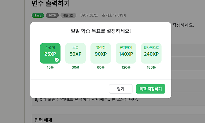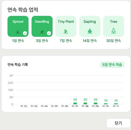 이거 연속 학습 업적 깨지기 싫어서 쉬운문제를 풀기도 하고 재밌는 기능이다.